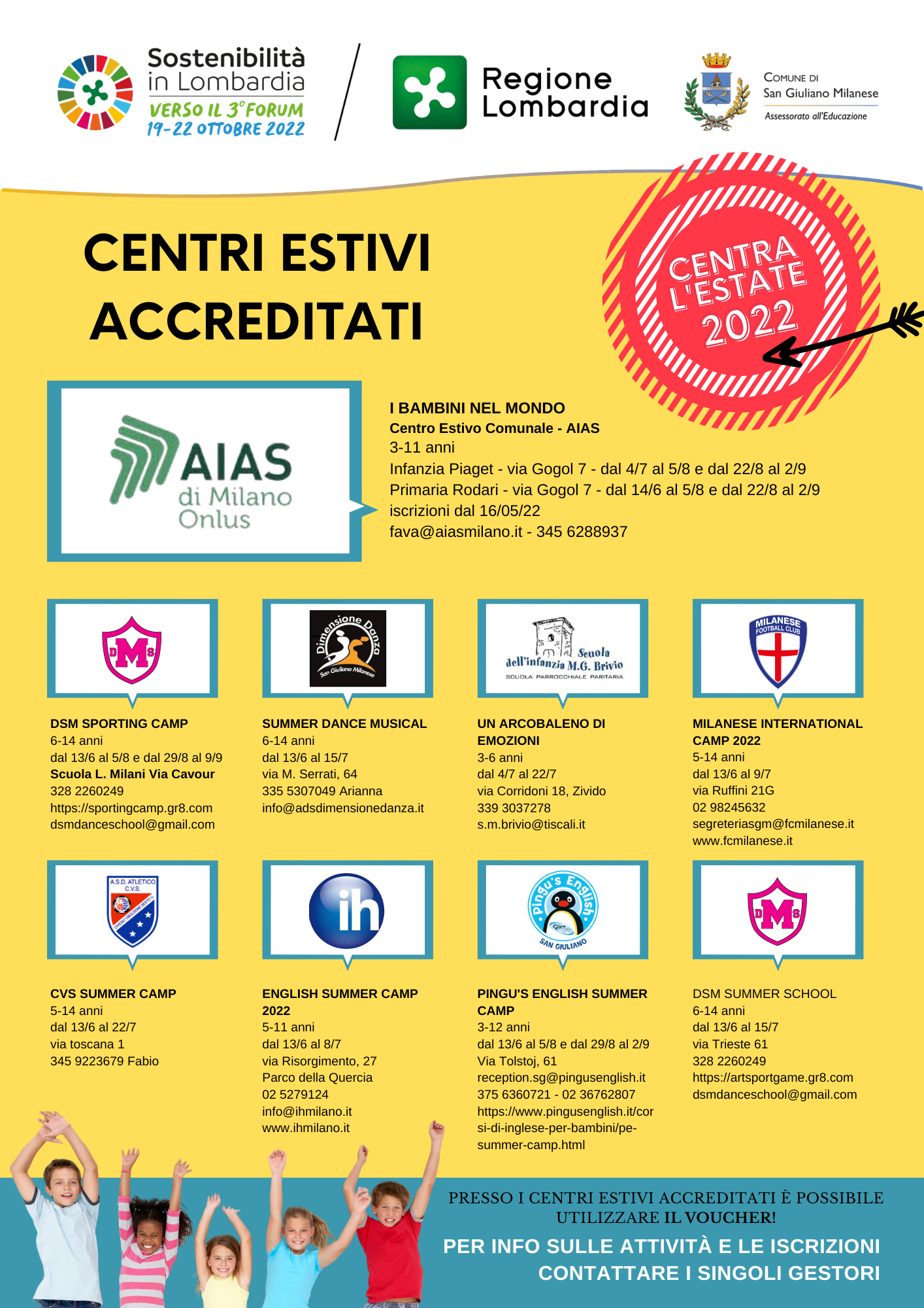 “Estate + Insieme” è un programma di Regione Lombardia, a supporto delle famiglie e ha l’obiettivo di rafforzare e sviluppare l’offerta di servizi per  bambini e ragazzi, per far fronte alle condizioni di disagio e isolamento conseguenti alla pandemia, promuovendo la collaborazione tra enti locali ed enti del terzo settore.